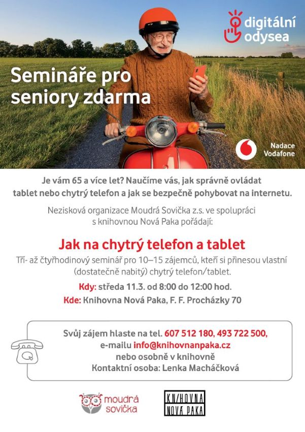 Svůj zájem hlaste na tel. 607 512 180, 493 722 500, e-mailu info@knihovnanpaka.cz nebo osobně v knihovně.