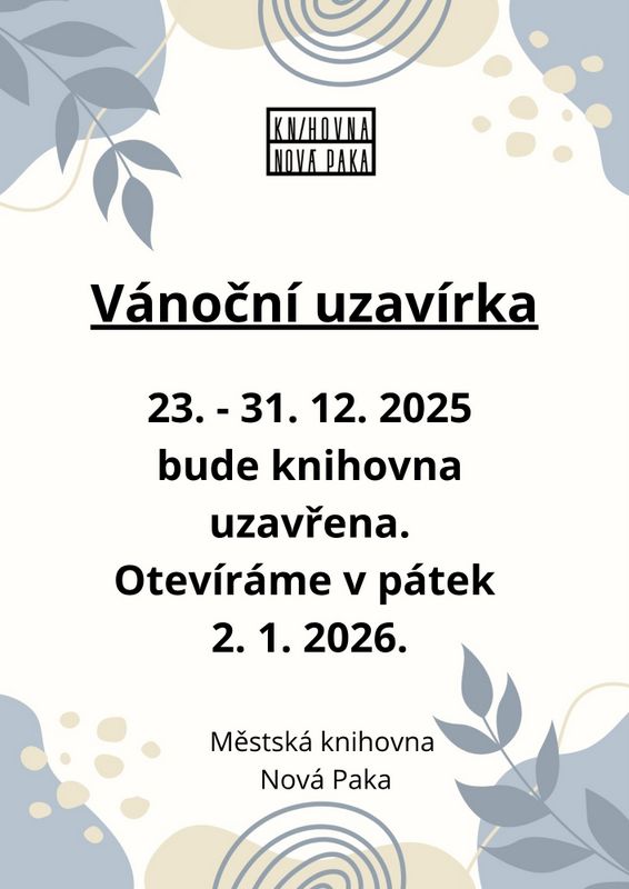 23. – 31. 12. 2025 bude knihovna uzavřena. Otevíráme v pátek 2. 1. 2026.